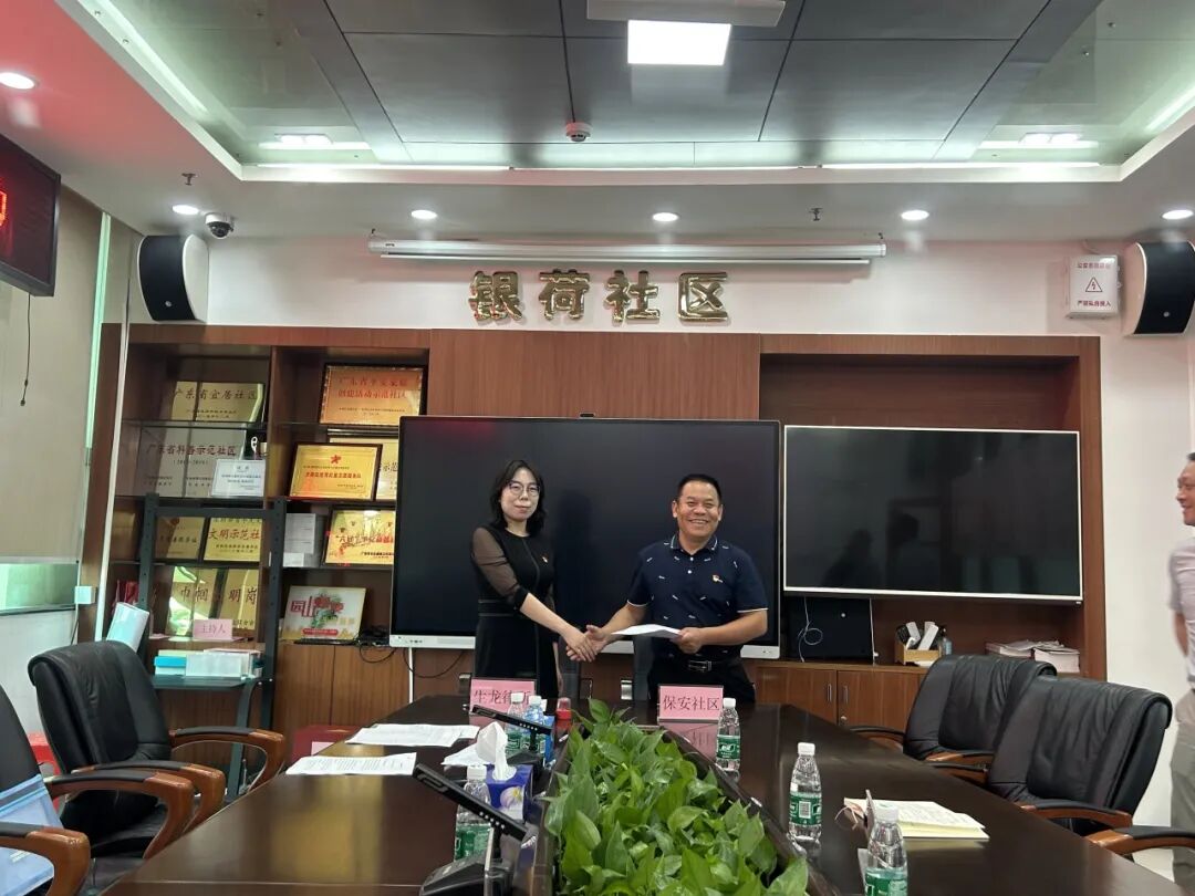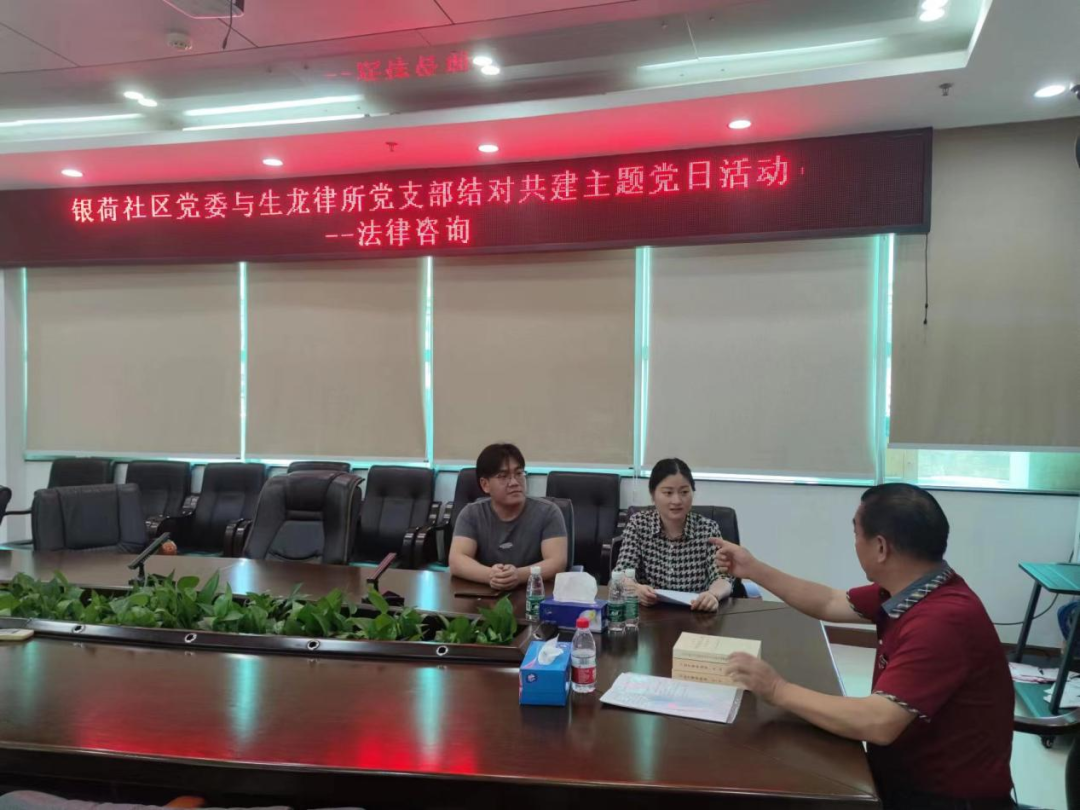 银荷社区党委书记对生龙所党支部和园山街道司法所的支持表示感谢,积极肯定了党组织的结对共建活动对社区法治建设的促进作用,希望生龙所党支部能够推动送法进社区,特别是在支持银荷社区打造全国法治示范社区方面多做工作。