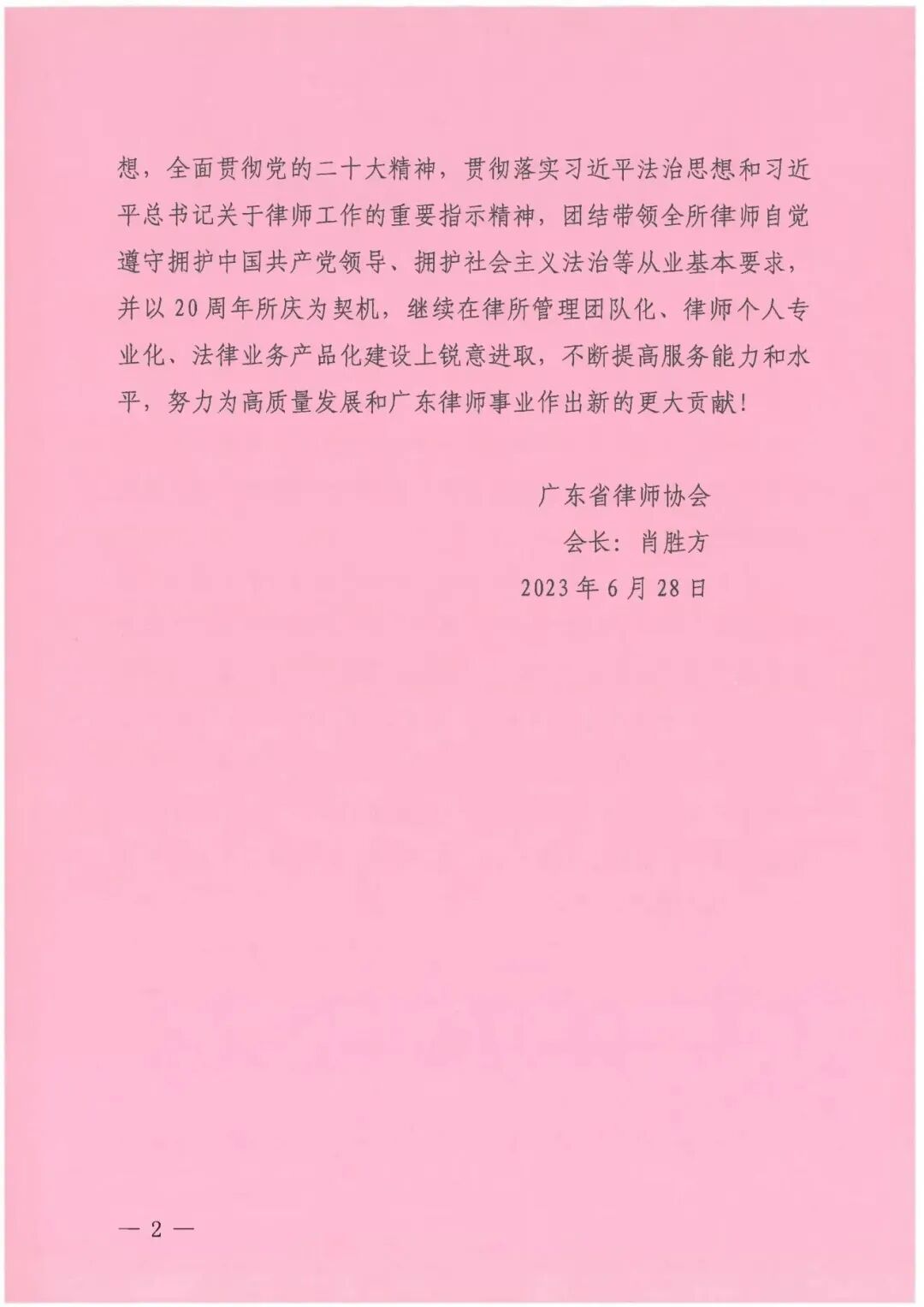 喜讯|广东省律师协会会长肖胜方发来贺信